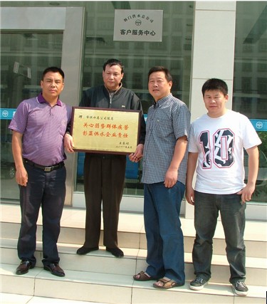 27日上午,竹園路盲人王良付在親友的攙扶下,將寫有“關(guān)心弱勢(shì)群體疾苦,彰顯供水企業(yè)責(zé)任”的匾牌送到市供水總公司。