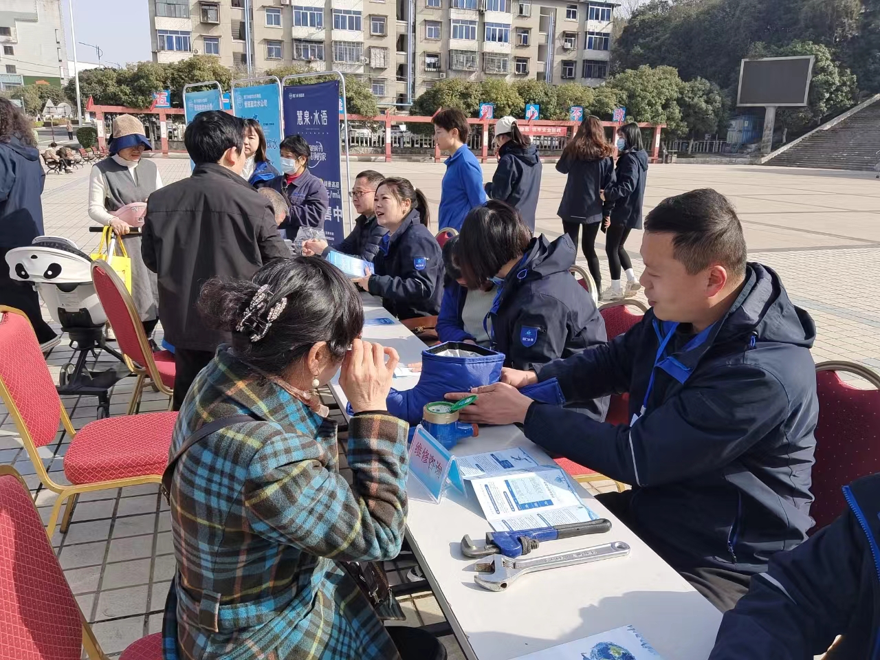 本次活動內(nèi)容主要包括供水知識科普、管道直飲水業(yè)務(wù)咨詢及現(xiàn)場答疑。時逢世界水日,水務(wù)藍在為用戶展示正確的水表防凍措施的同時,也分享了不少節(jié)水小妙招。