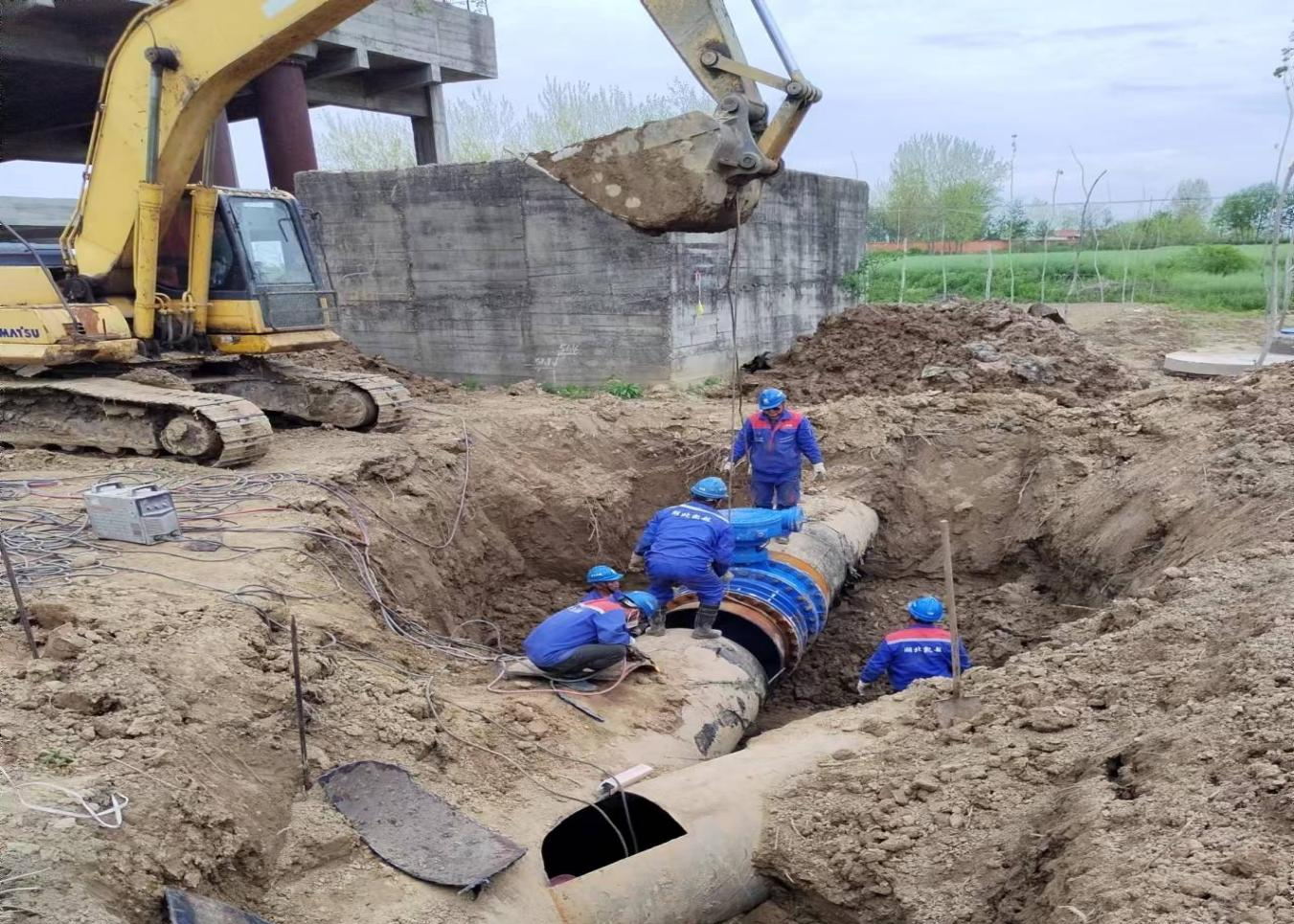 4月9日7時至次日凌晨4時,40余名工作人員陸續(xù)就位,充分調(diào)配備用原水,關(guān)閉總閘、排水、抽水、切割、焊接,施工過程一氣呵成。
